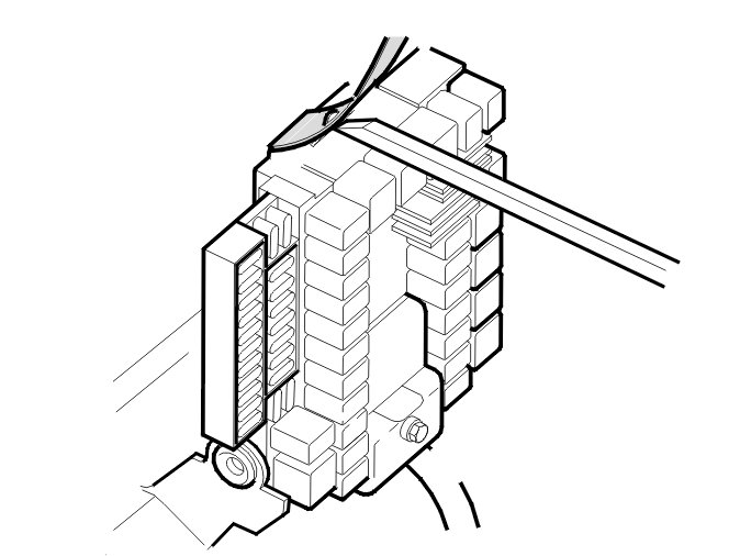 Release the integrated relay/fusebox. Lift the catch by the upper edge and angle out the integrated relay/fusebox.