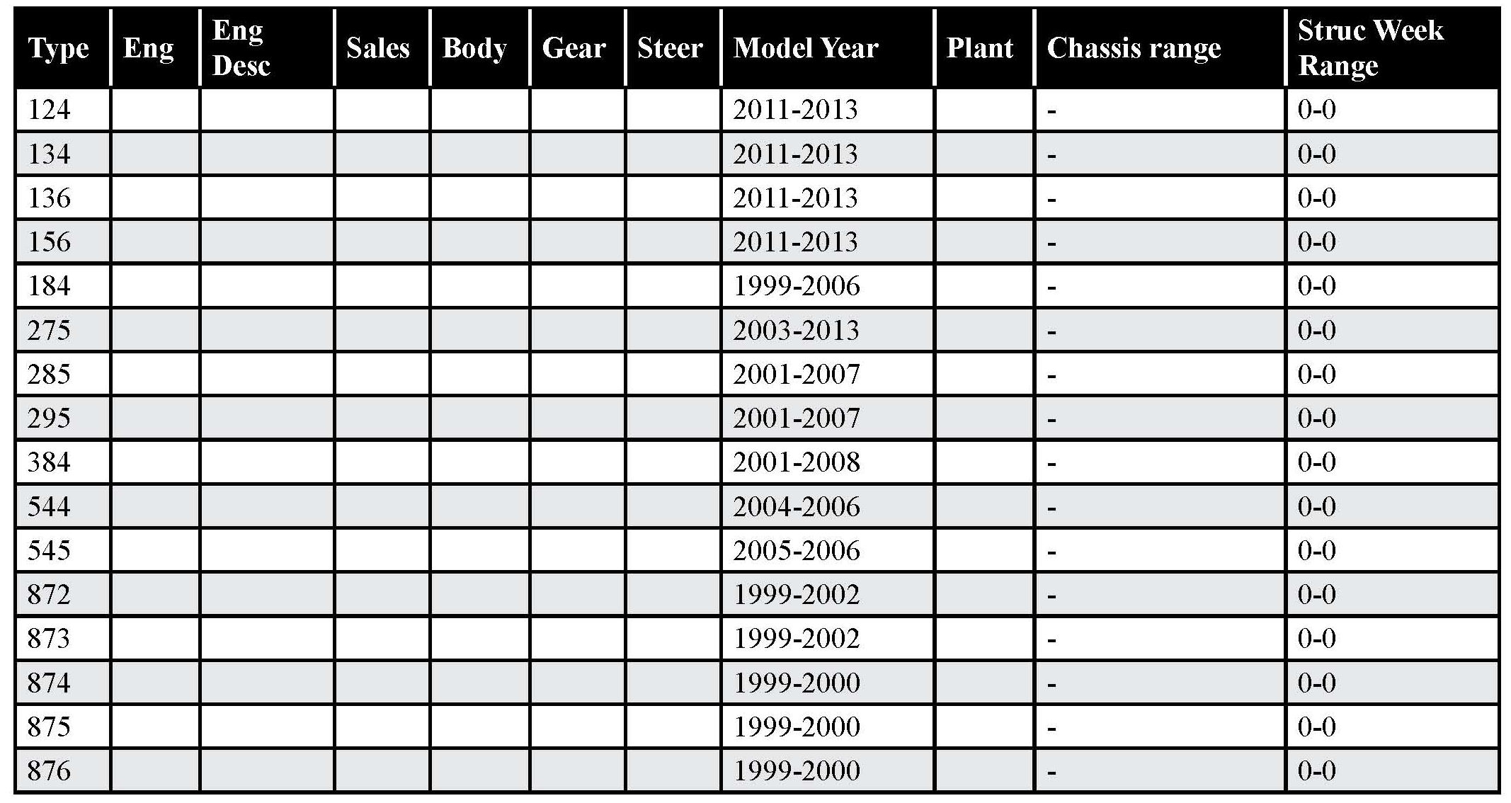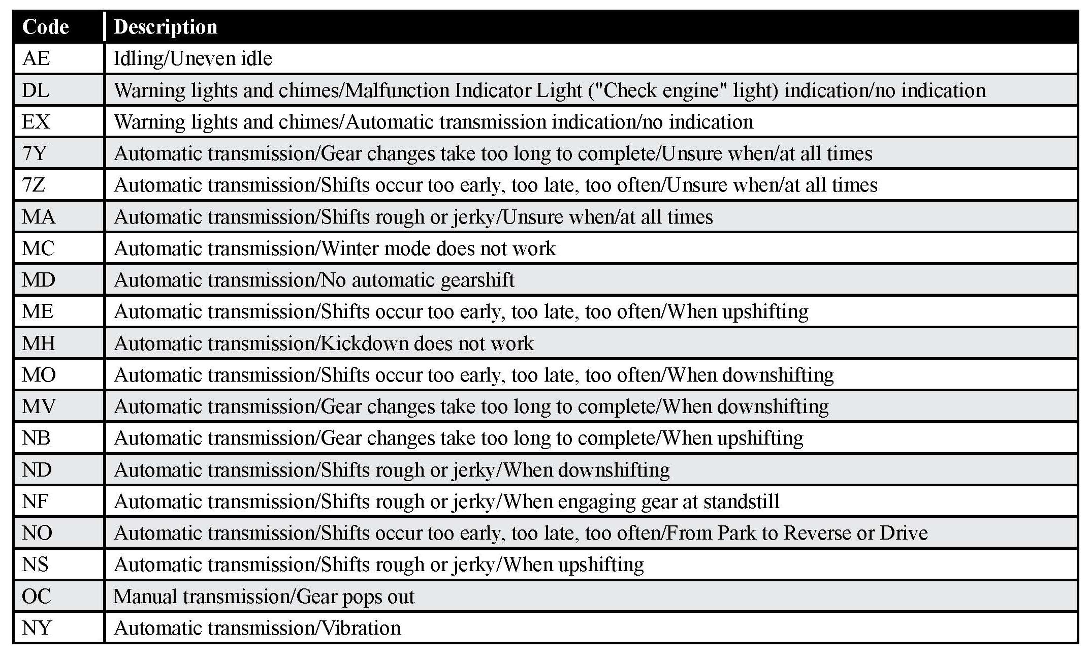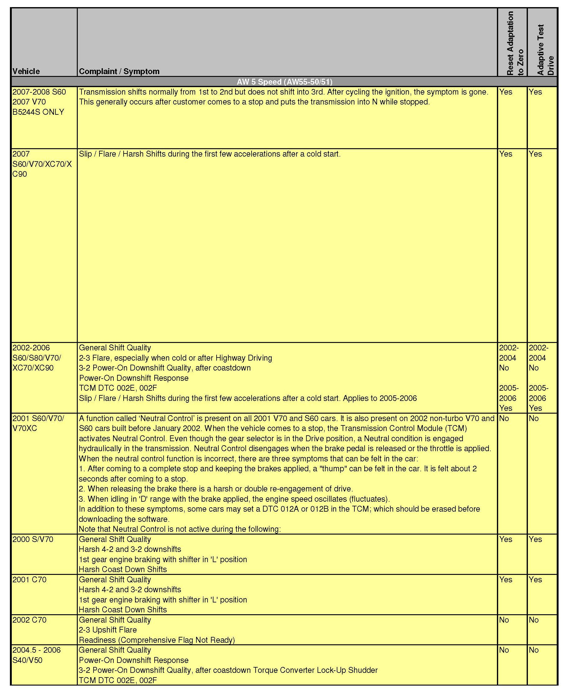 2. Just because there is a TCM or ECM Upgrade available, it doesn't necessarily mean the customers symptom will be remedied by the Upgrade. If the transmission-related complaint is not listed in the chart, further fault tracing is required for a proper repair!
