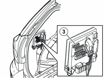 - Press in the catch on the grey connector on the rear of the fuse holder in the cargo compartment, turn the lock arm up as far as it will go and pull out the connector.