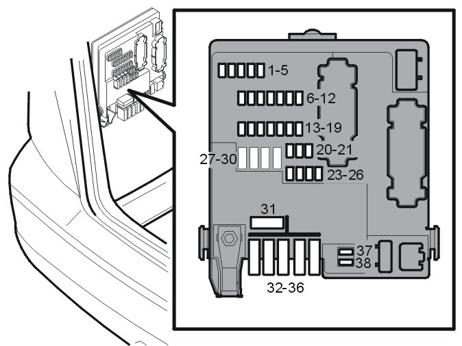 - Decals at both the integrated relay box and fusebox in the car