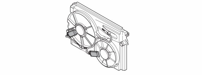 The engine cooling fan (FC) consists of two fans and two control modules. The control modules are controlled by the same signal from the engine control module (ECM).
