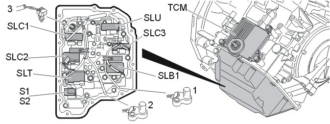 - Linear pressure solenoid SLC1 - Controls transmission shift pressure and also used with certain shiftings.