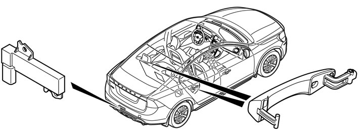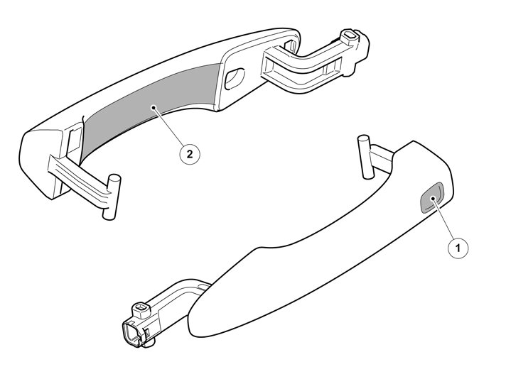 Every external side door handle is equipped with two capacitive sensors. One sensor for locking and one for unlocking. A capacitative sensor senses changes in its vicinity. The unlock sensor is located on the inside of the handle. The lock sensor is located on the handle's outside.