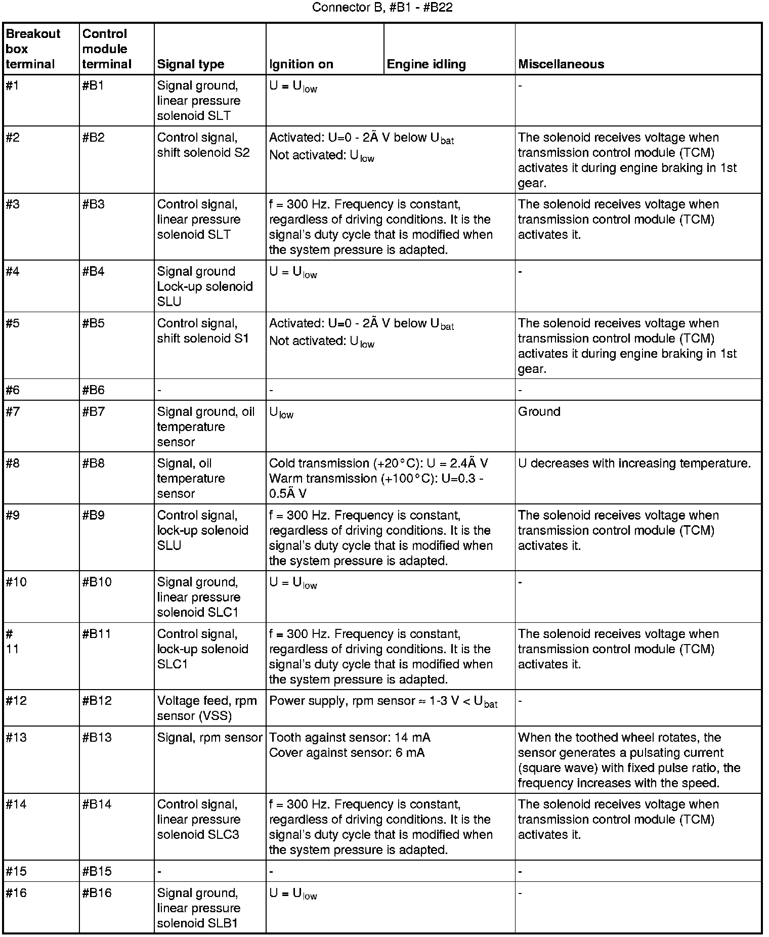 Connector B (22-pin to transmission) corresponds to #1 - #22 on the breakout box.