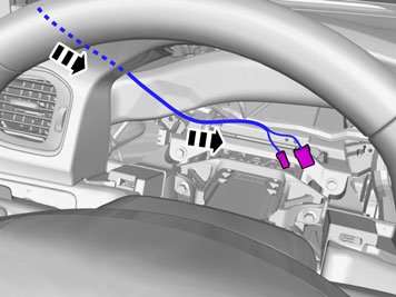 - Route the cable harness forward inside the mat, through the centre console, up through the dashboard and out to the left at the combined instrument panel.
