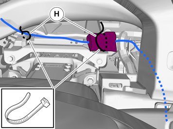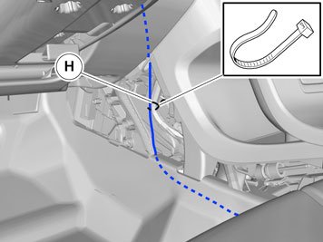 - Clamp the cable at the existing cable harness. Conceal any overlength cable inside the mat.