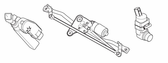The windshield wipers are operated by a motor located beneath the cowl panel cover. Washer jets are located on the hood and bumper shell for windshield and headlamp washing. The jets are connected to two different pump motors on the washer fluid reservoir, which is located at the front right of the engine compartment. One pump motor is used for high pressure washing of the headlamps while the other is used for windshield washing.