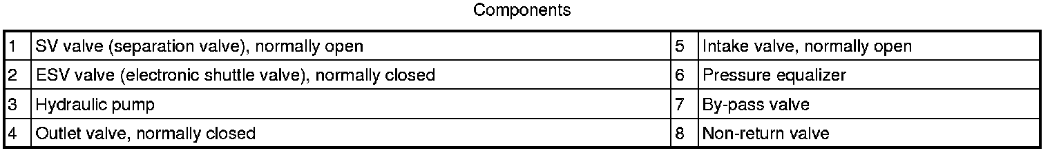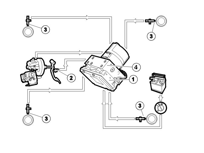 Activating the brakes, which the brake control module (BCM) registers via a signal from the brake light switch, terminates traction control and causes the SV valve to open. The ESV valve is closed so that the pump cannot suck brake fluid from the master cylinder. The hydraulic unit now works as a normal ABS hydraulic modulator.