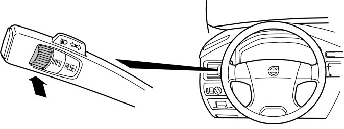 Stability control can be engaged or disengaged manually by turning the function selector on the left steering wheel stalk until "DSTC/spinncontrol on/off" appears in the driver information module display. The selection is then confirmed by pressing the "Reset" button. All functions are connected when the ignition is turned on. If the stability function is disengaged, the other functions will operate normally.