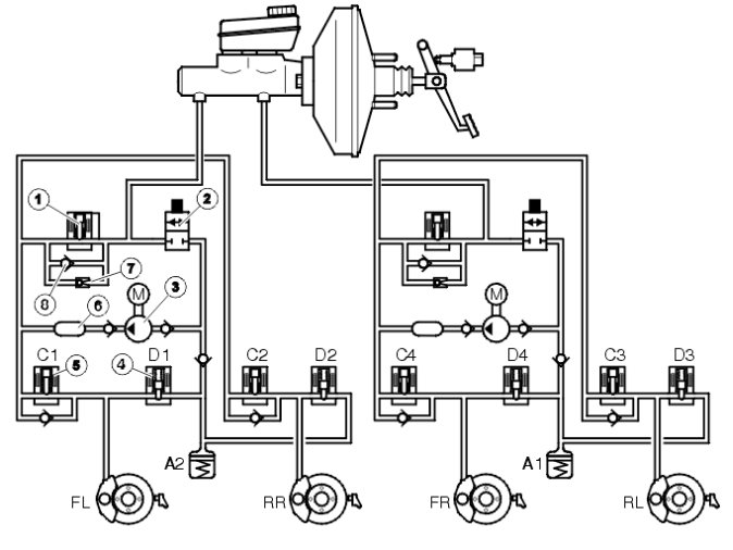 If the driver depresses the brake pedal during stability control, the brake control module (BCM) will use the brake pressure sensor integrated in the hydraulic unit to incorporate the driver's brake actuation into stability control.