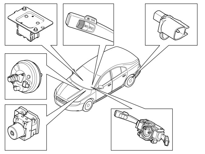The function works by Closing velocity module (CVM), located behind the rearview mirror, using a laser sensor and registers any traffic in front of the vehicle. In case of major collision risk the Closing velocity module (CVM) sends a request for braking to Brake control module (BCM).