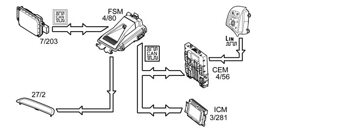 The function is activated via the switch for distance control, which is located in the centre console or via the menu system in the infotainment control module (ICM) (3/281). If there is no switch, activation can only be made via the menu system in the ICM.