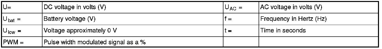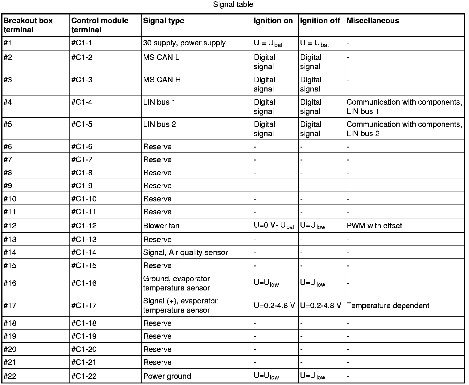 All values given below are between the connection stated in column 1 and connection #22 in column 1 (power ground). This applies unless otherwise indicated in brackets.