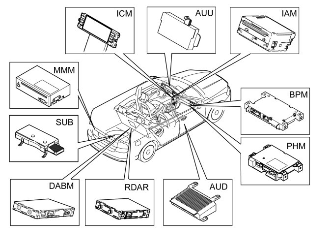 The infotainment control module (ICM) deals with monitoring and communication on the MOST network. The infotainment control module (ICM) is in turn monitored by the central electronic module (CEM) on the CAN network.