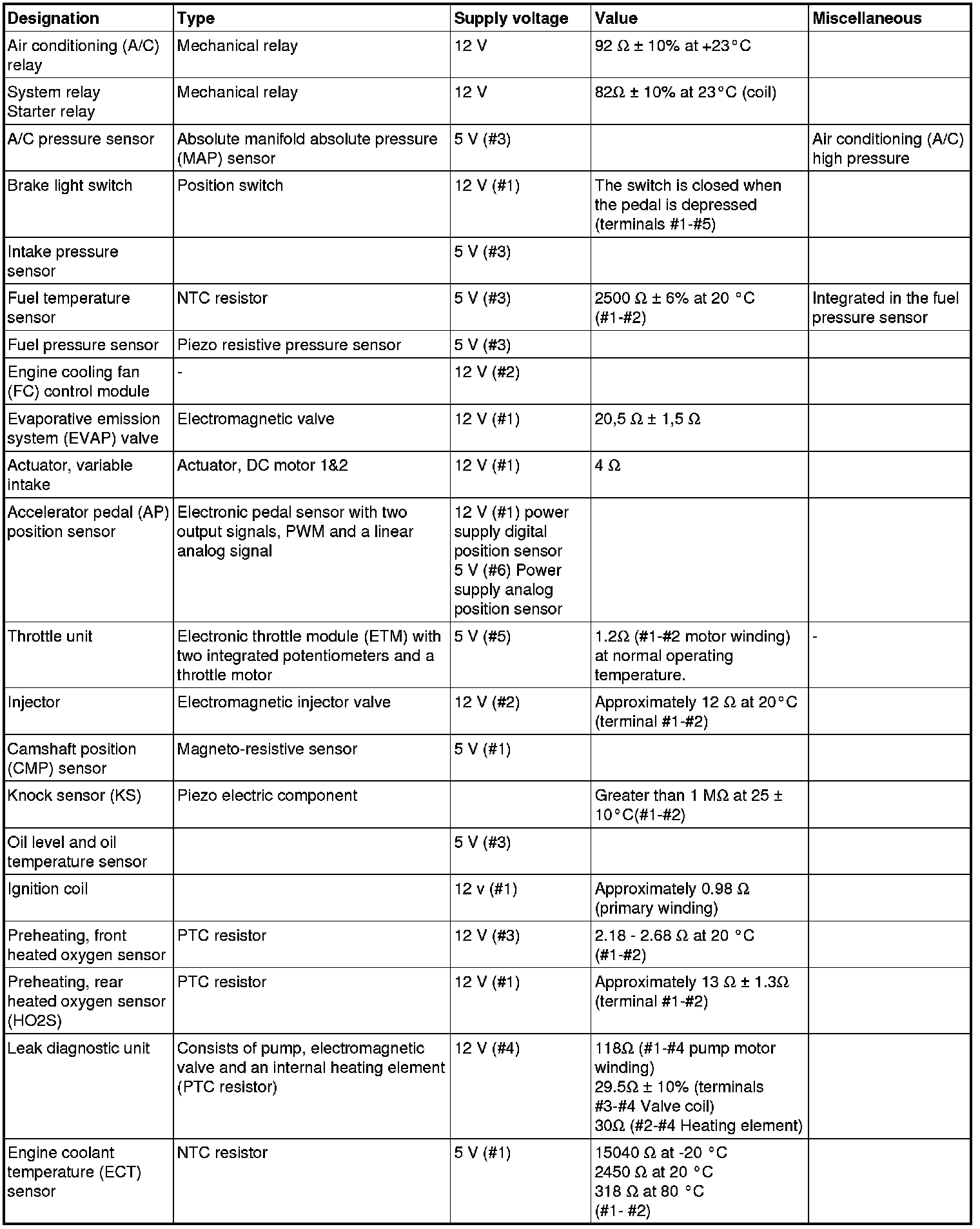 The component specification gives the value of the component when the connector is disconnected. Where no value is given, it is not possible to measure a relevant value at the component.