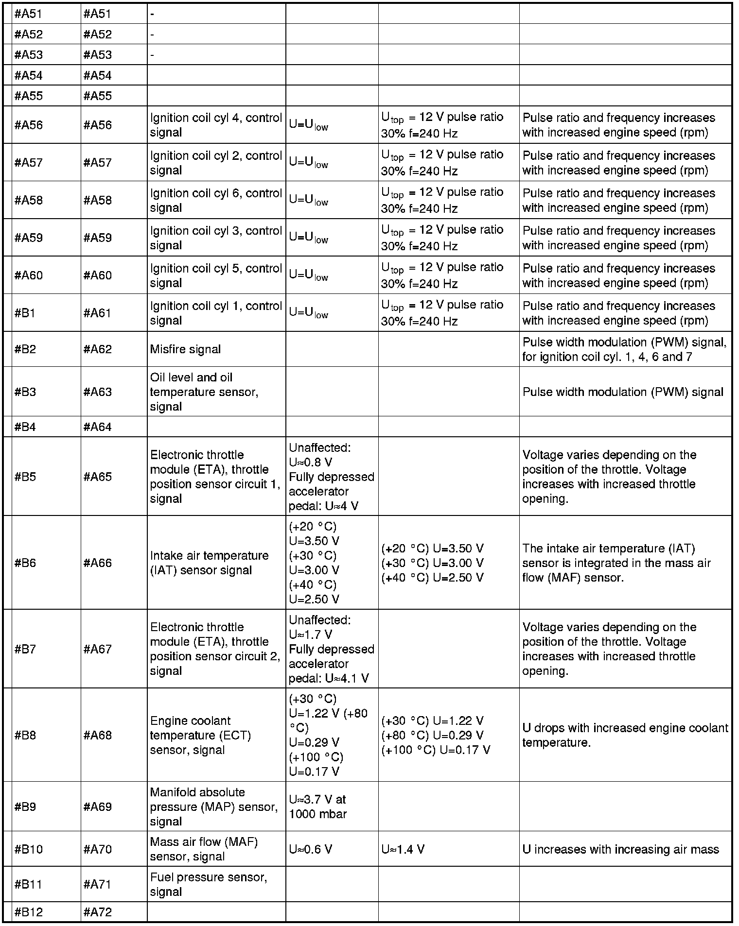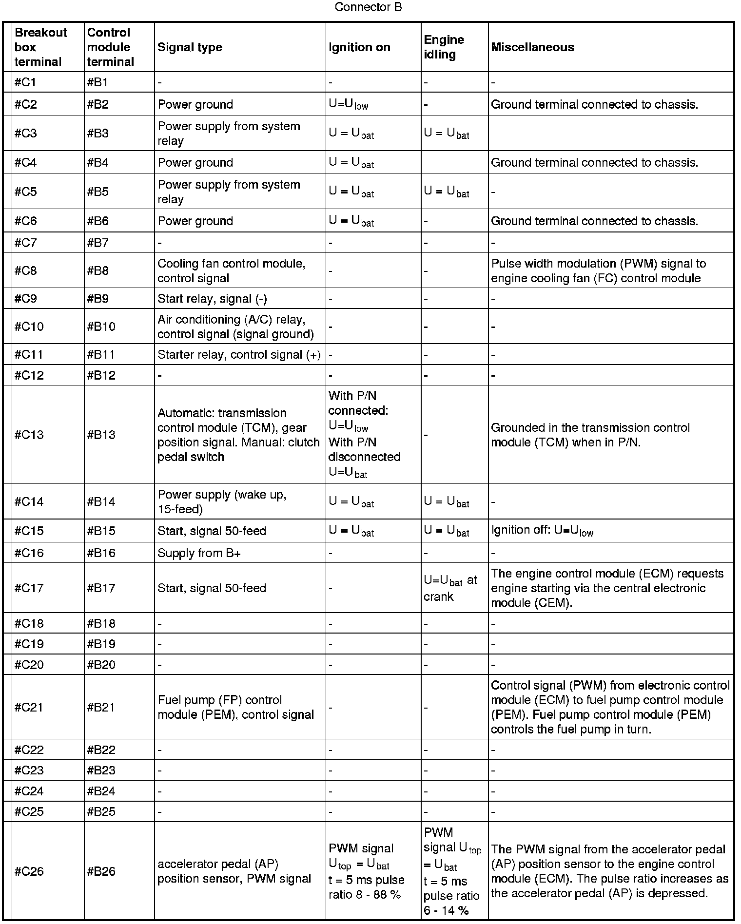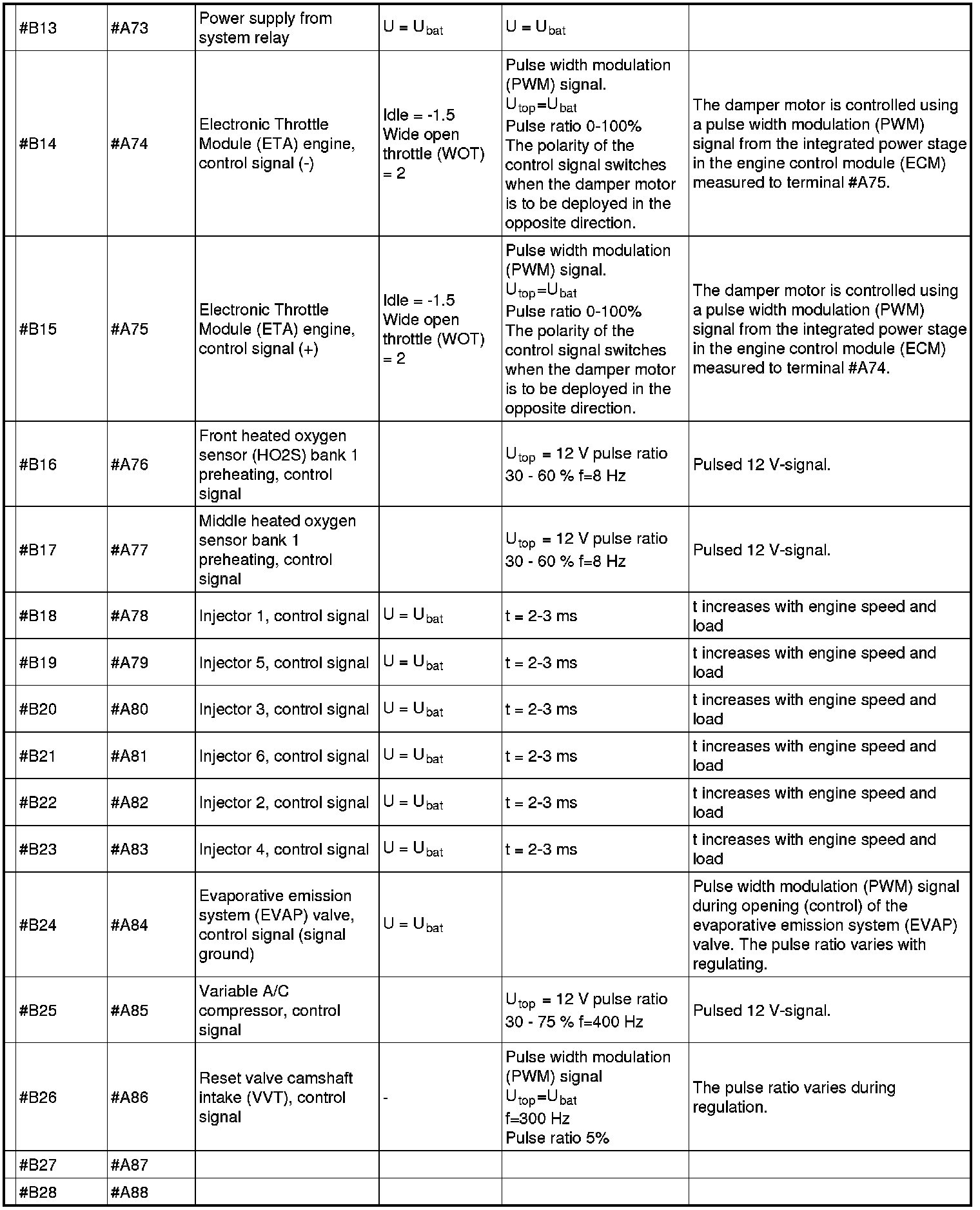 Signal specification, engine control module (ECM)