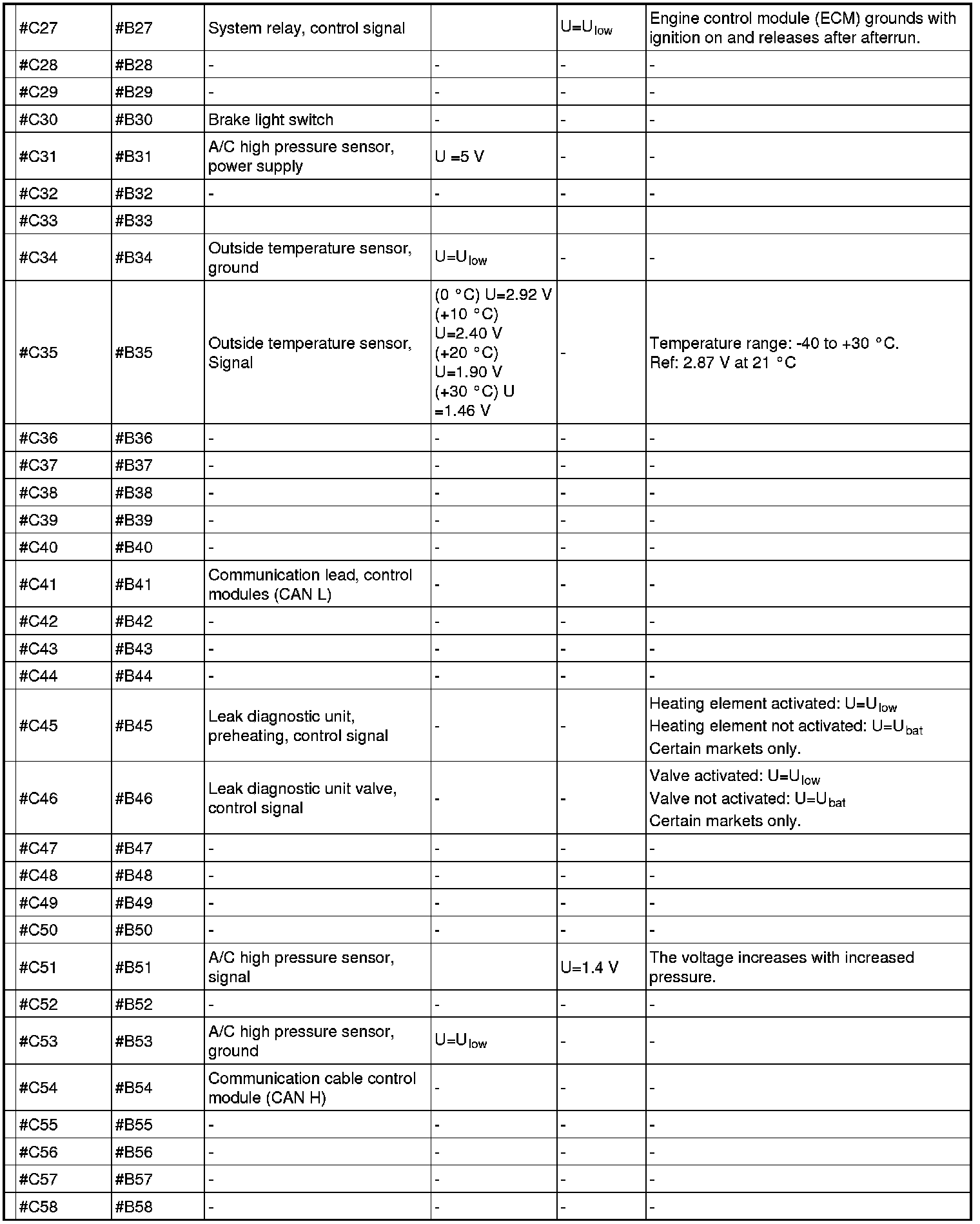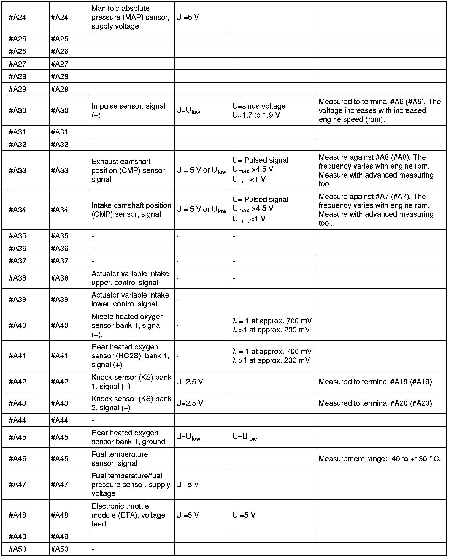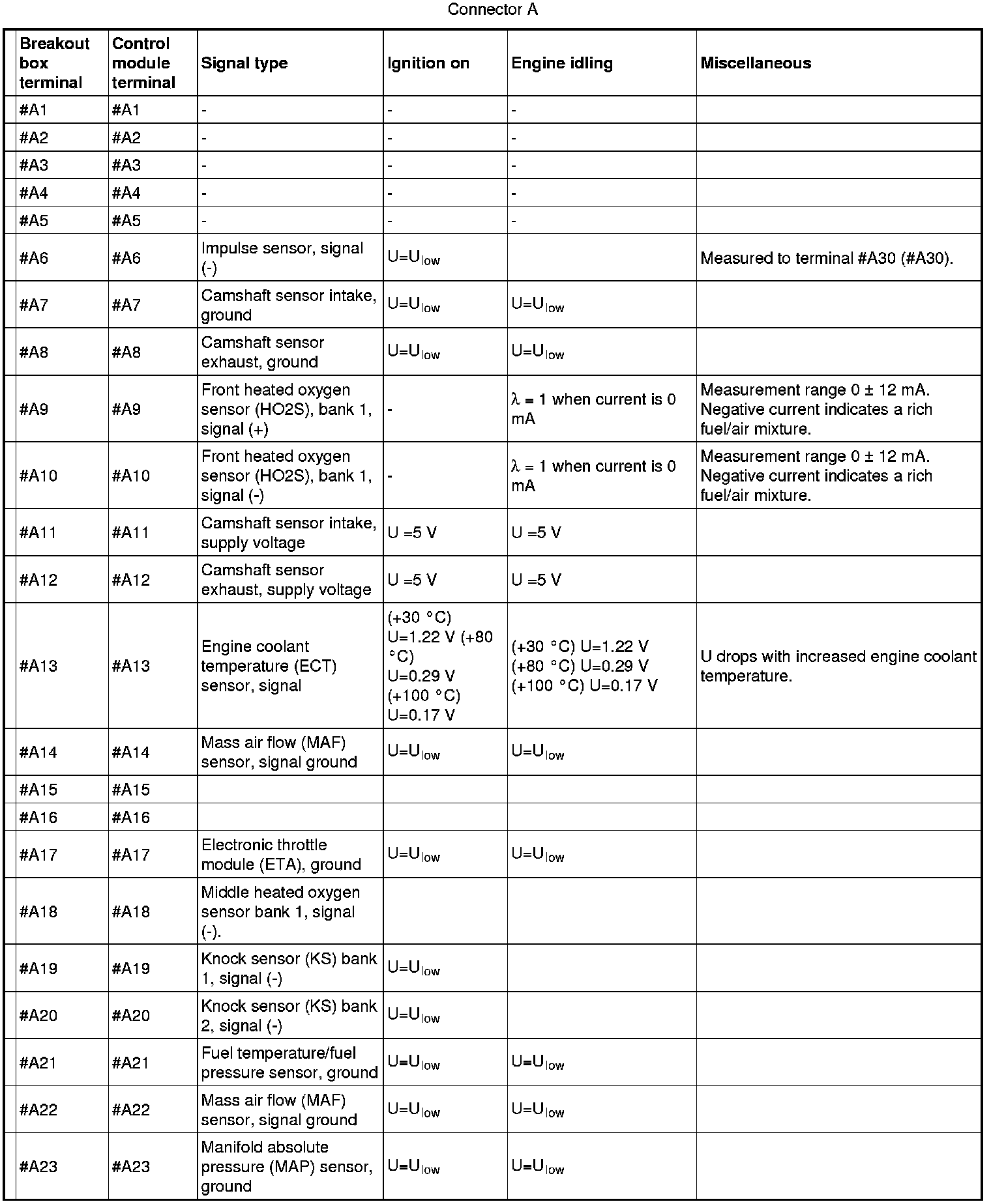 Signal specification, engine control module (ECM)