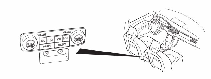 Audio module (AUD) has two outputs for connecting headphones/earphones. The headphone panel is located by the rear part of the tunnel console. Each separate headphone output has control of volume, next track, previous track, and selection of source.