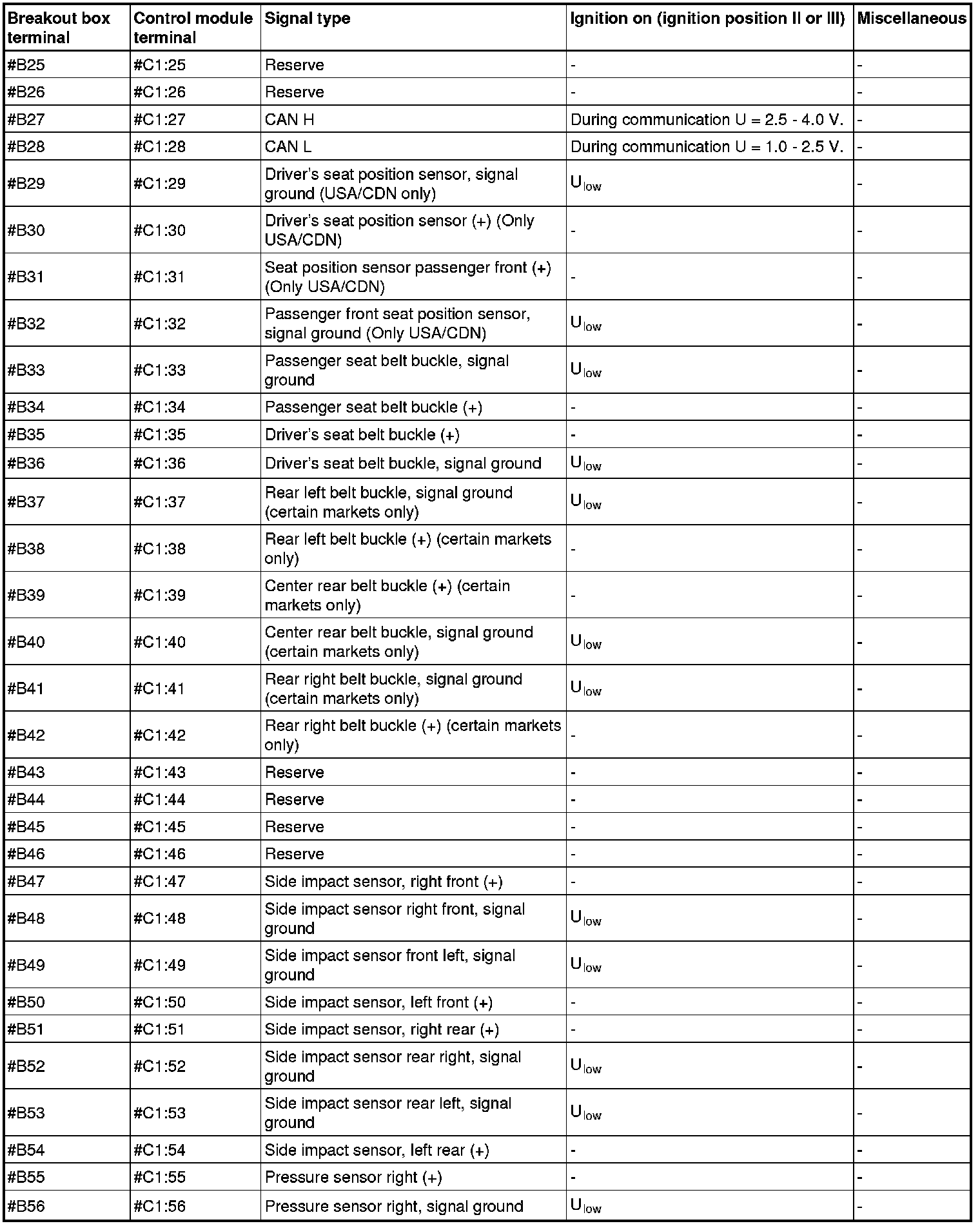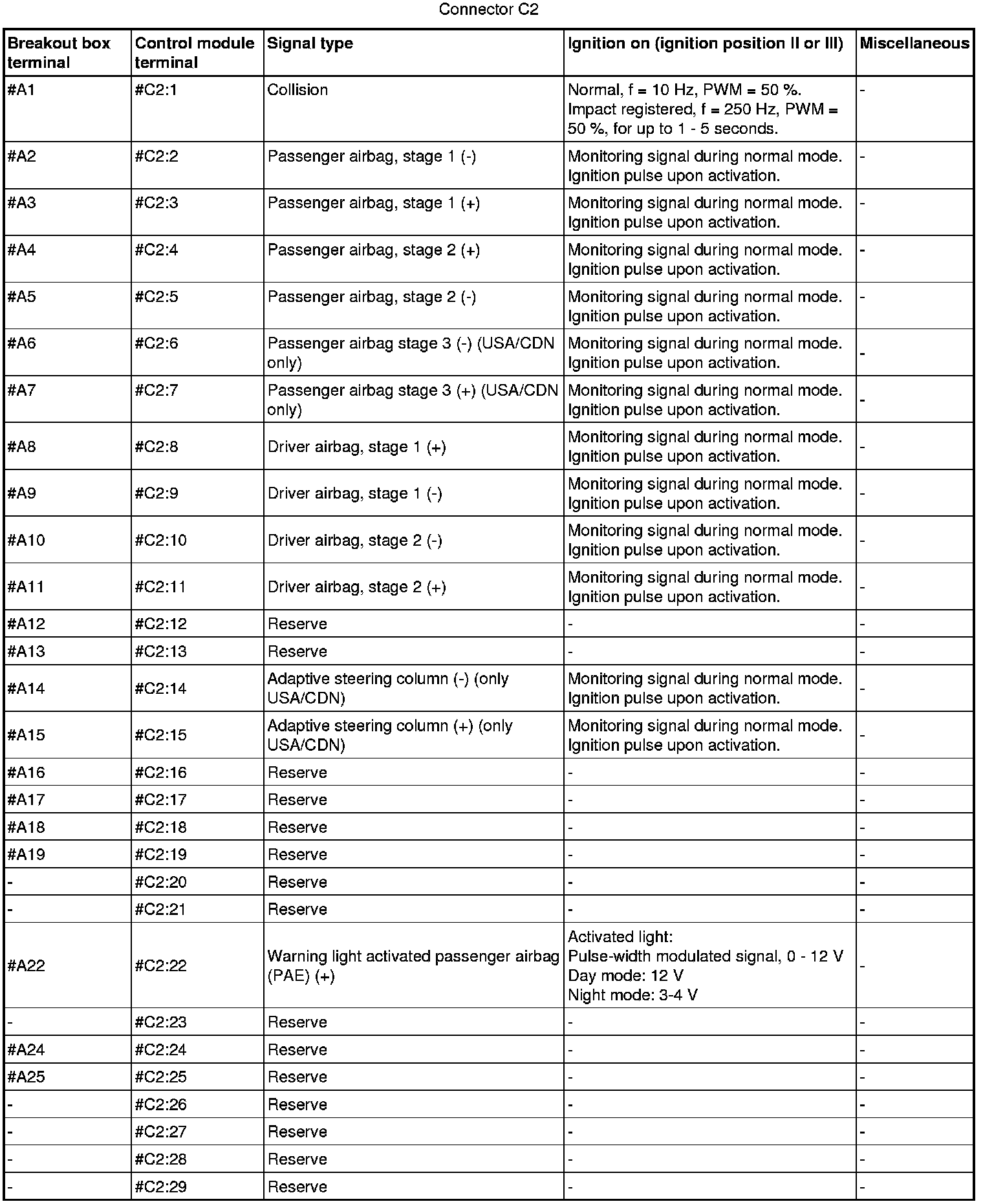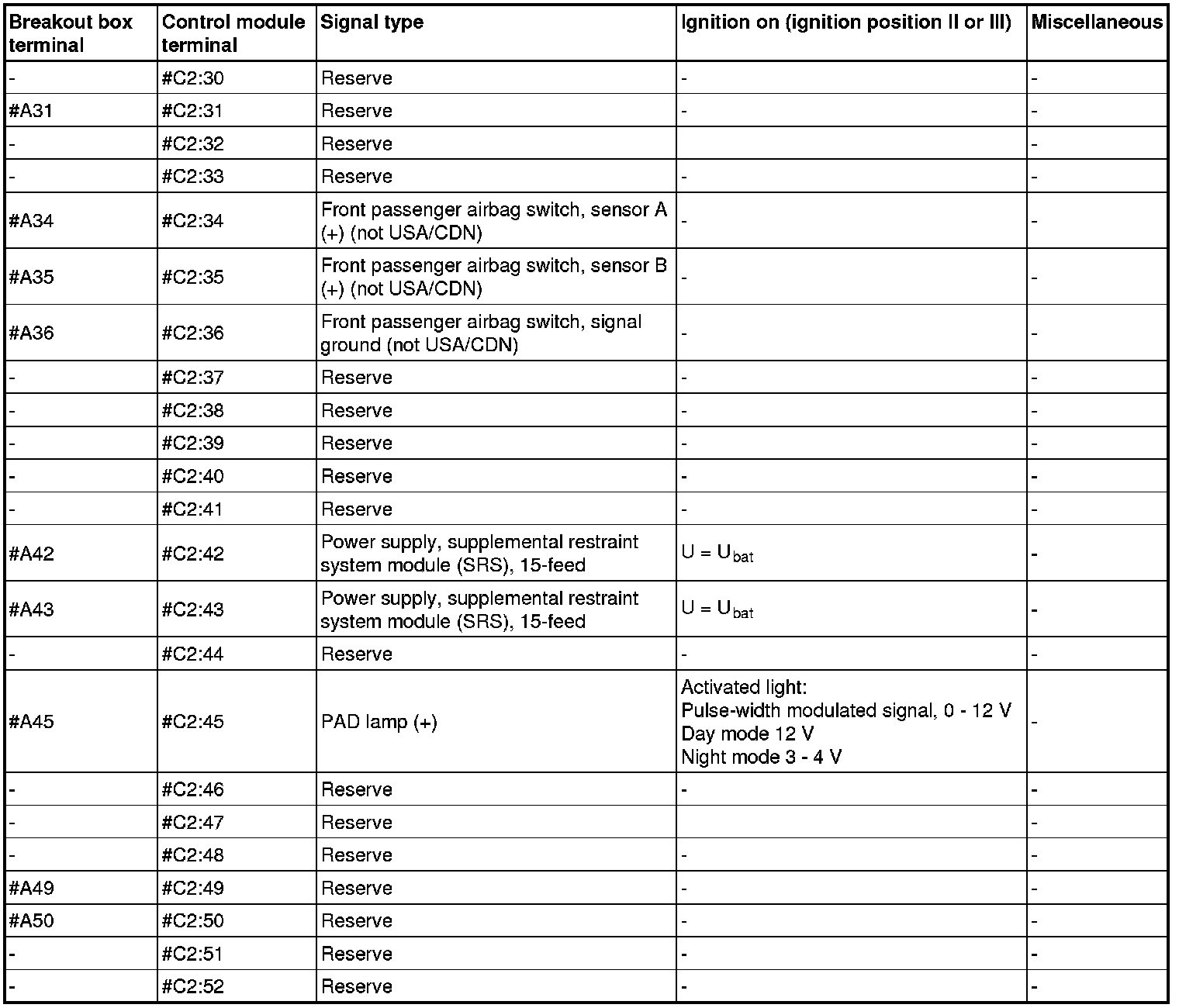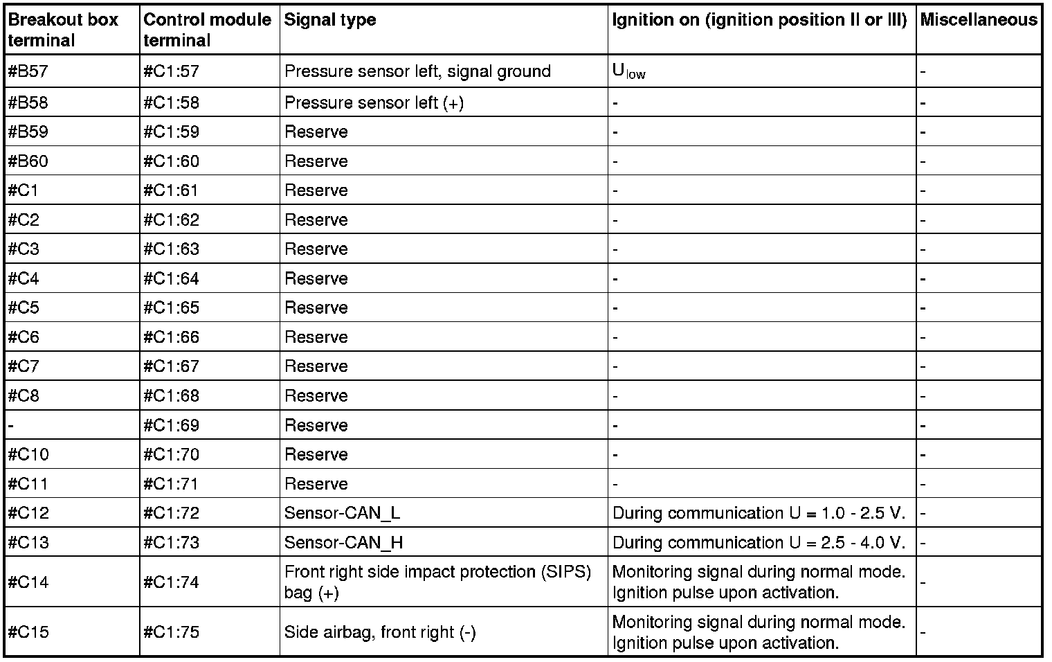 All the values indicated below are only described values, as the power supply is not permitted when the breakout box is connected.