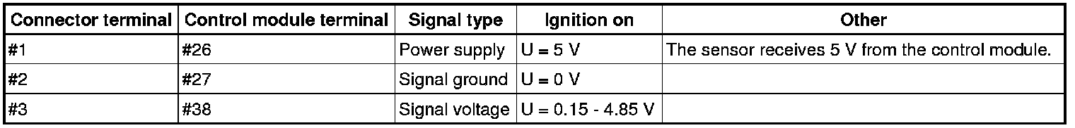 Voltage between terminals #A3 and #A21 should be approximately0.15 V when the brake pedal is not actuated and up to approximately4.85 V when the brake pedal is depressed.