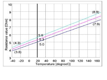 Other values, see diagram. When measuring at other temperature than +20 °C the check-measurement shall be performed at +20 °C. This is to ensure if the resistance is correct or not.