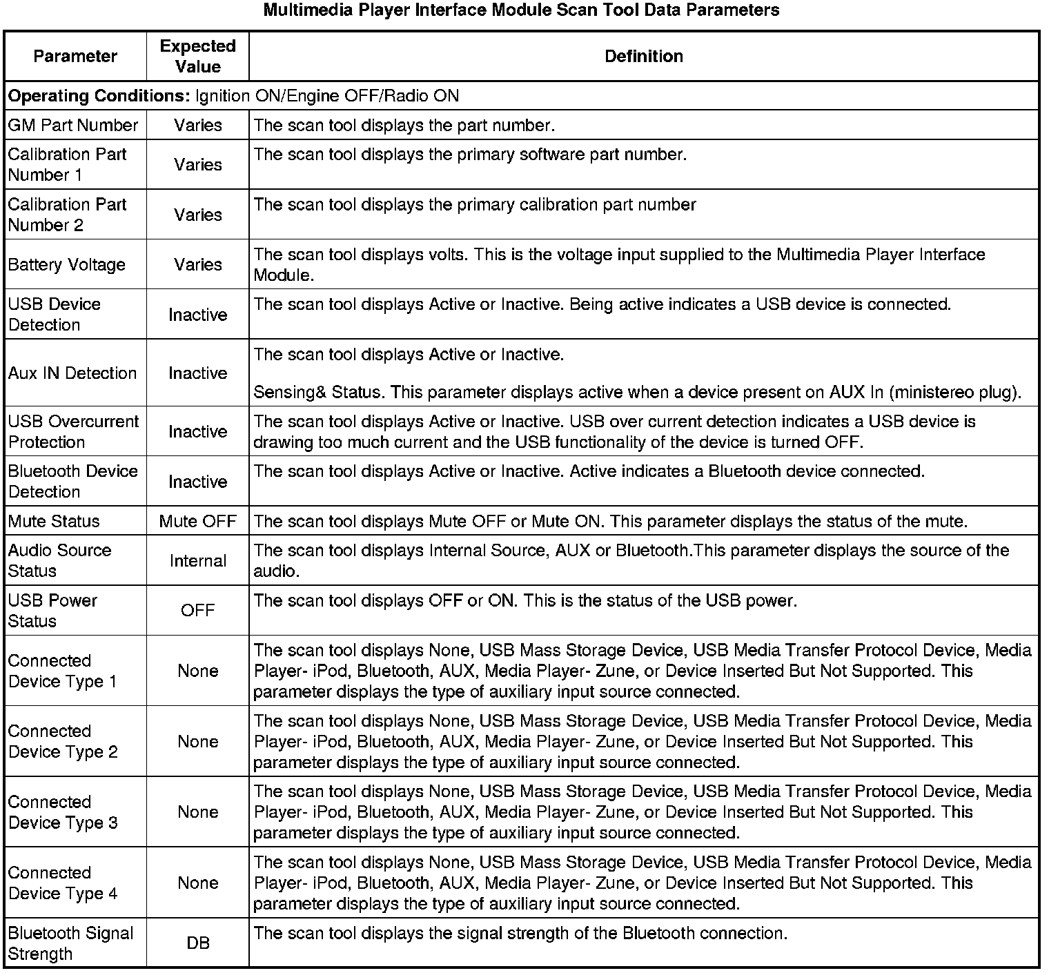 Multimedia Player Interface Module Scan Tool Information