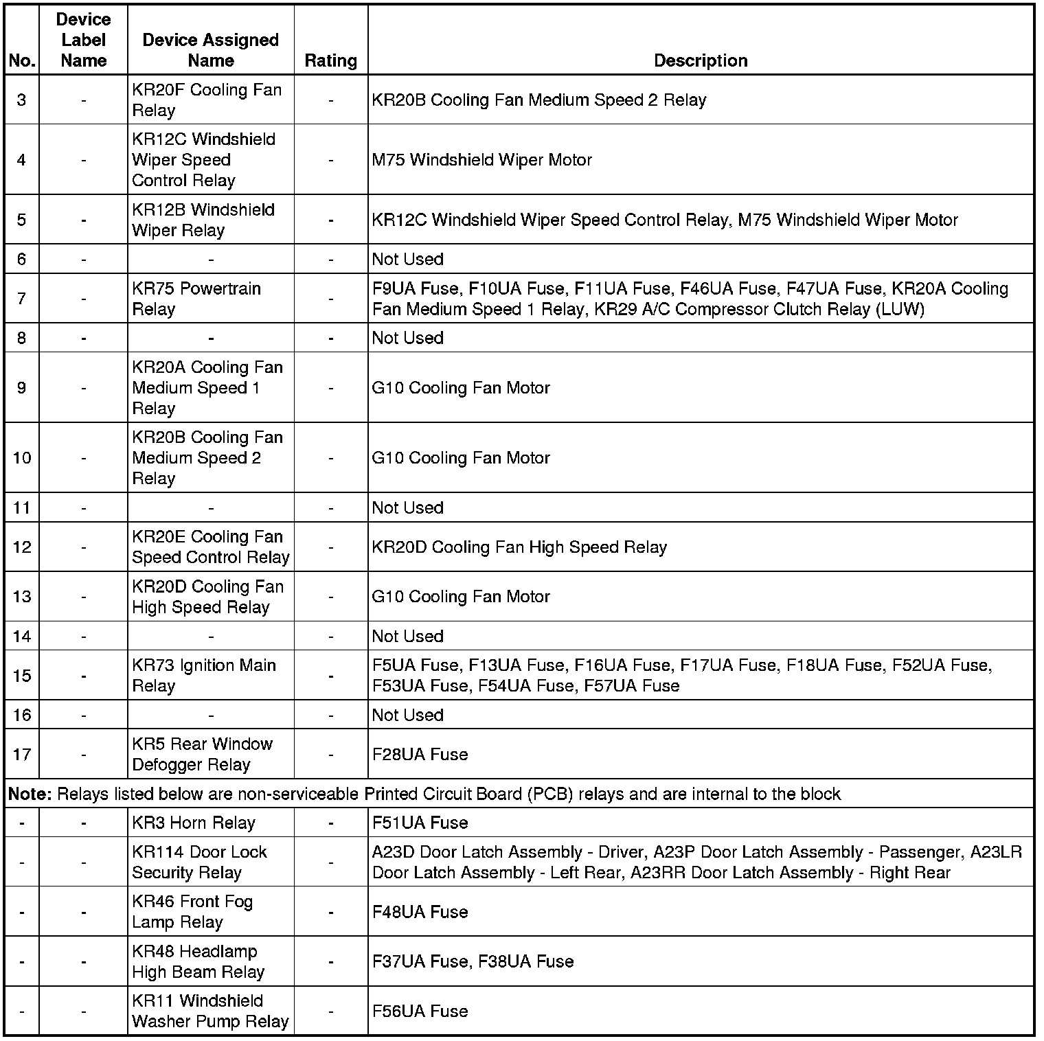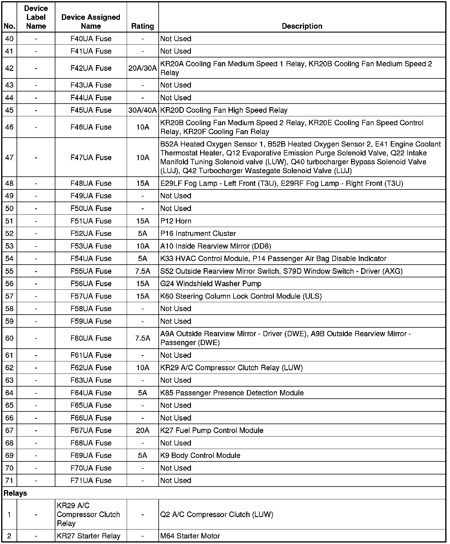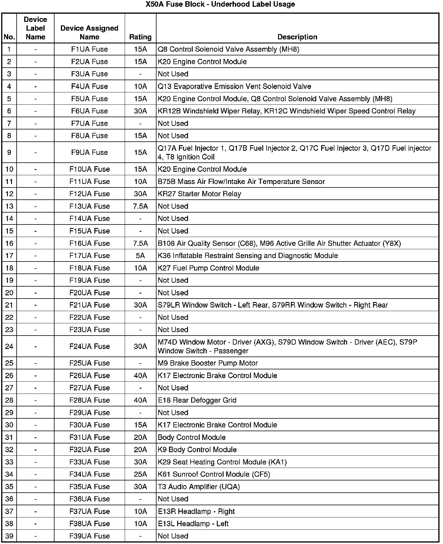 X50A Fuse Block - Underhood Label