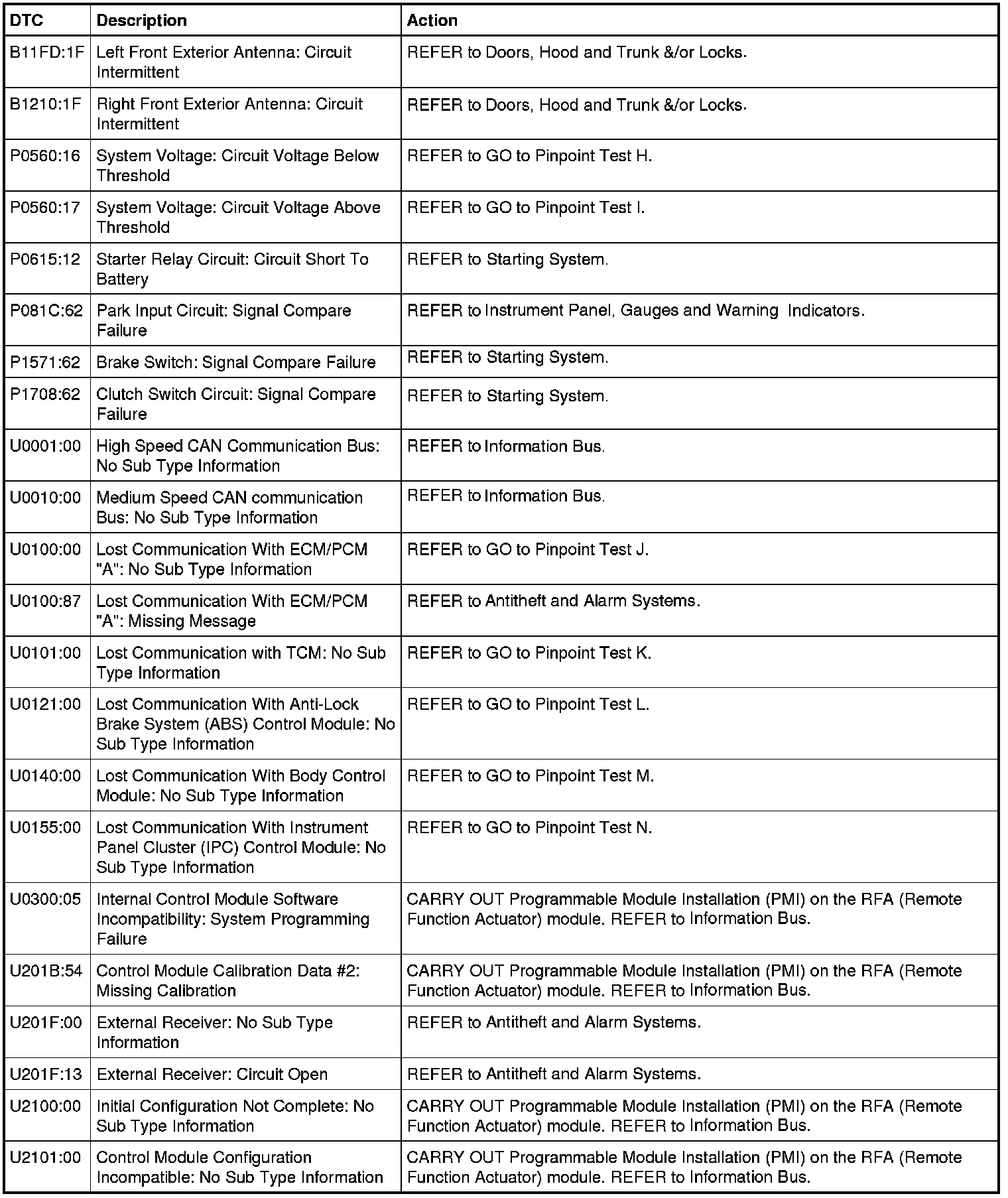 NOTE: Refer to Description and Operation, Intelligent Access (IA) with Push Button Start in Antitheft and Alarm Systems to review the procedures for achieving the various ignition states (ignition off, ignition on, ignition start) on vehicles with this feature.