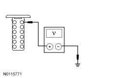 - Measure the voltage between the FCDIM (Front Control/Display Interface Module) C2123-1, circuit SBP07 (WH/RD), harness side and ground.