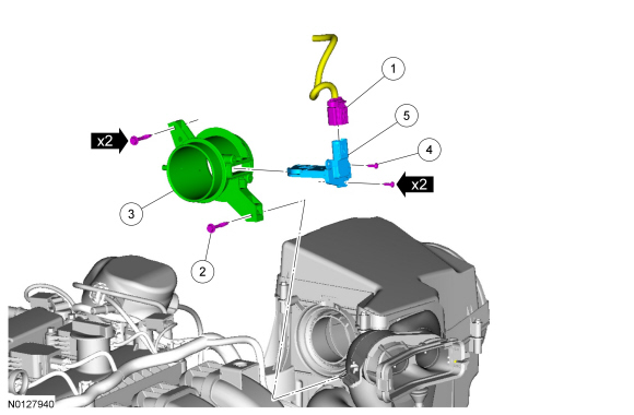 1. Install the MAF (Mass Air Flow) sensor and the 2 screws.