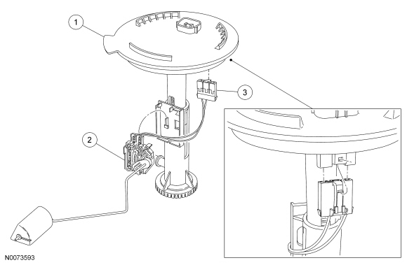 1. Remove either the Fuel Pump (FP) module or fuel level sensor assembly. For additional information, refer to Fuel Pump Module Fuel Pump Module or Fuel Level Sensor Fuel Level Sensor.