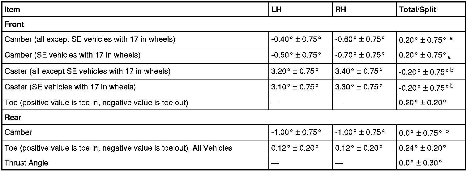 a Camber Total/Split = LH Camber - RH Camber