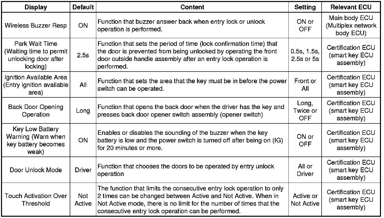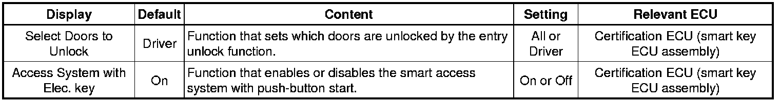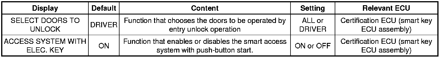 THEFT DETERRENT / KEYLESS ENTRY: SMART ACCESS SYSTEM WITH PUSH-BUTTON START (for Entry Function): CUSTOMIZE PARAMETERS