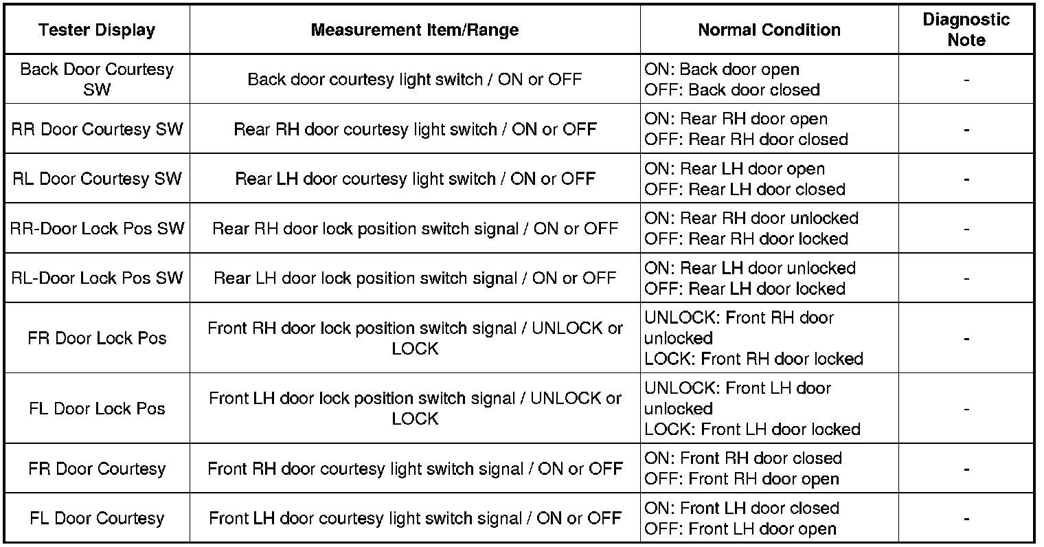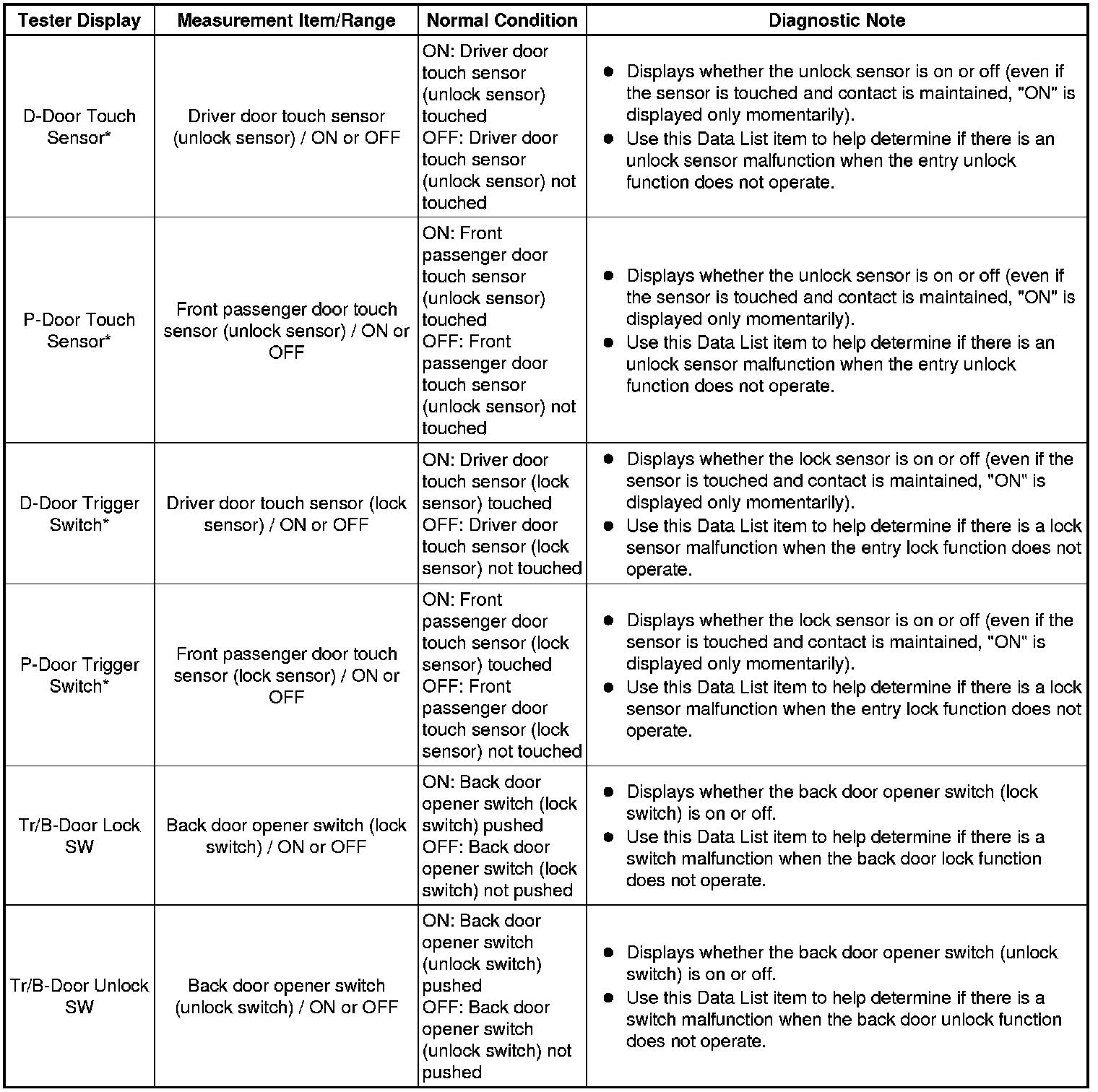 * *3: With power switch off, all doors closed, key not inside vehicle and all doors unlocked, front door outside handle assembly (lock sensor) touched.