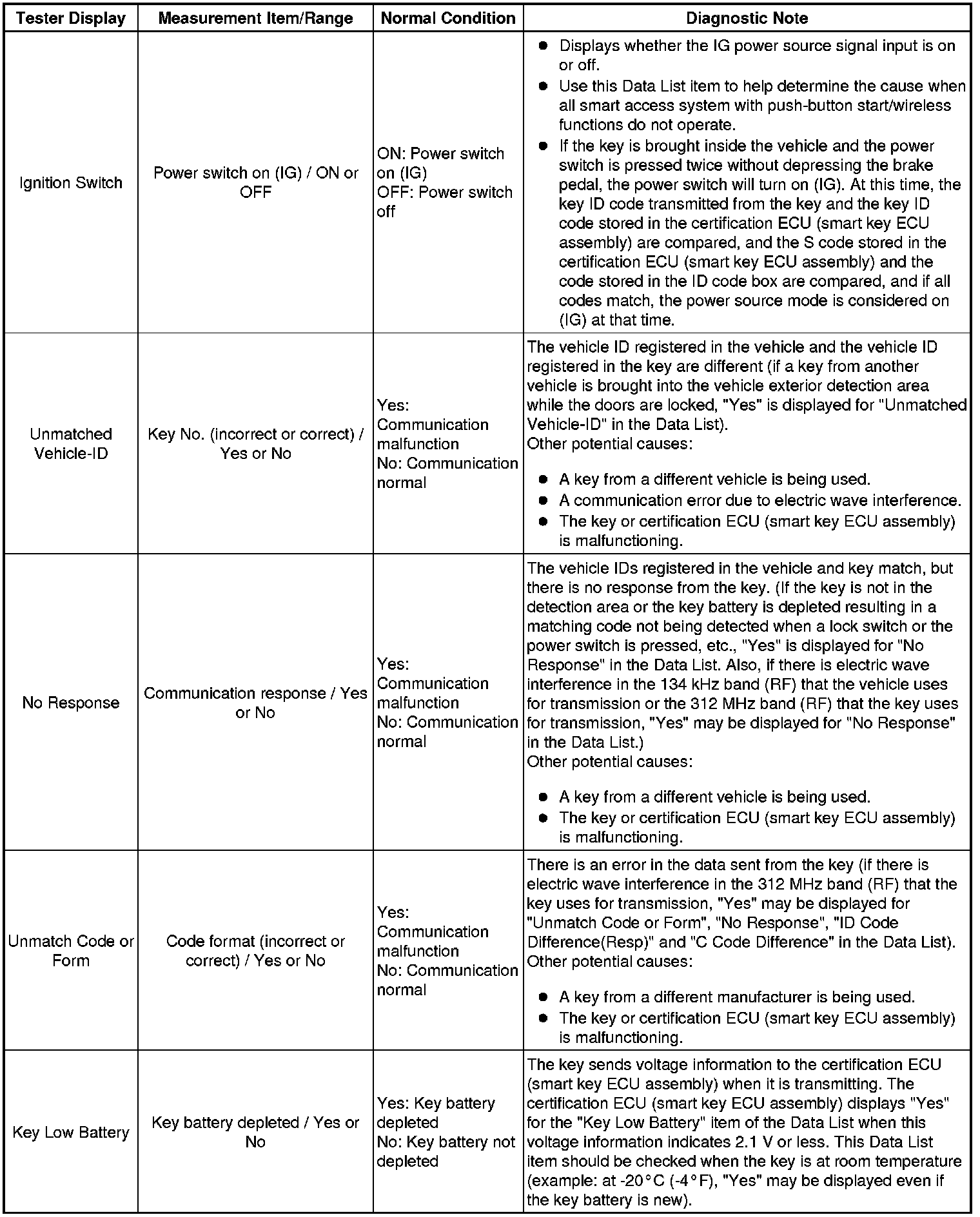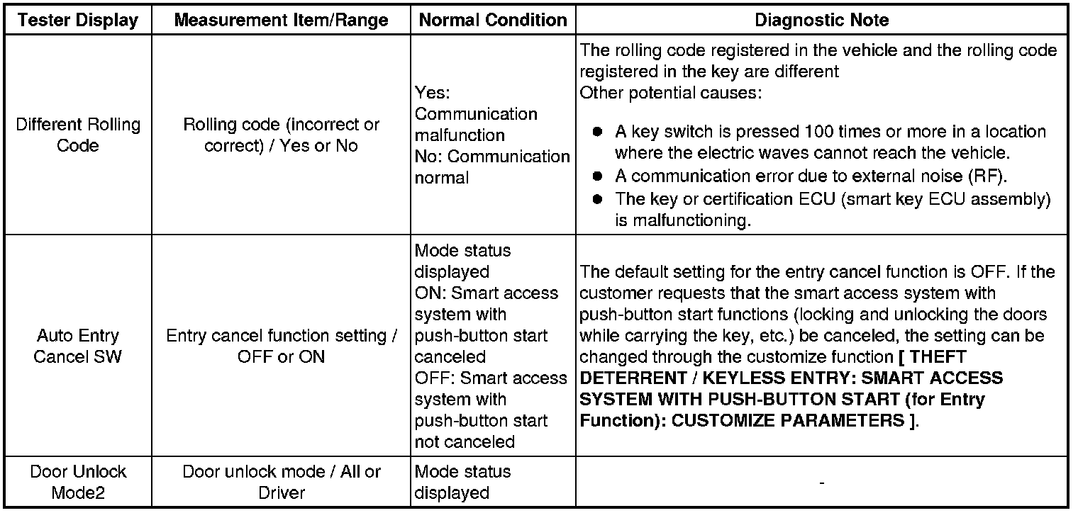 THEFT DETERRENT / KEYLESS ENTRY: SMART ACCESS SYSTEM WITH PUSH-BUTTON START (for Entry Function): DATA LIST / ACTIVE TEST