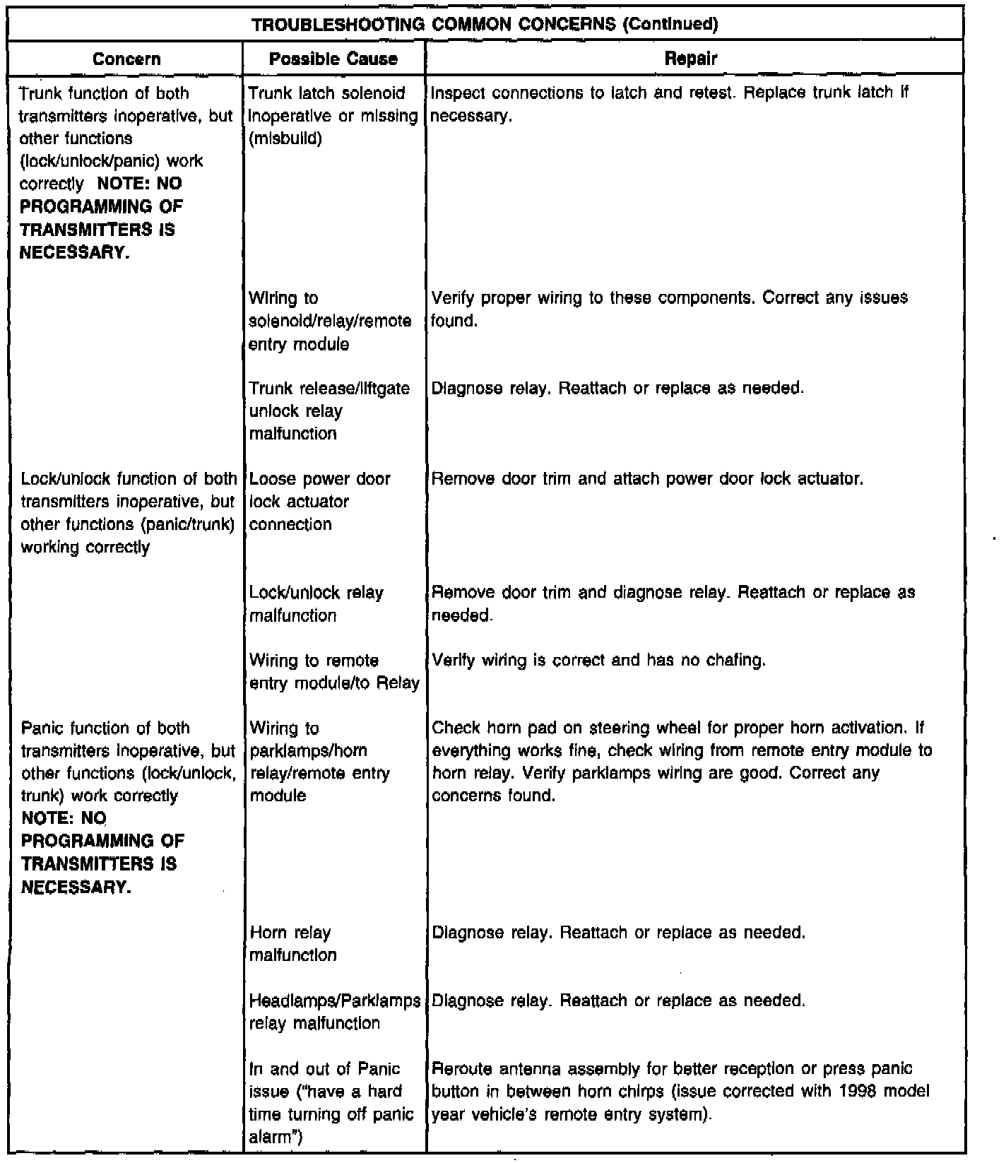 J. Turn ignition to RUN or ACC. Momentarily jump pins in programming connector located at the base of the steering column. All doors will lock then unlock to confirm programming mode. Press any button on 1st transmitter. The door locks will lock then unlock to confirm programming. Press any button on 2nd transmitter (up to 4 transmitters total possible). Turn ignition to OFF. The door locks will lock then unlock to confirm programming.