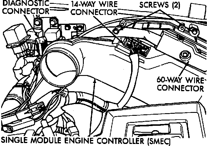 The Single Module Engine Controller (SMEC) is located under the hood, on the left side, next to the battery.