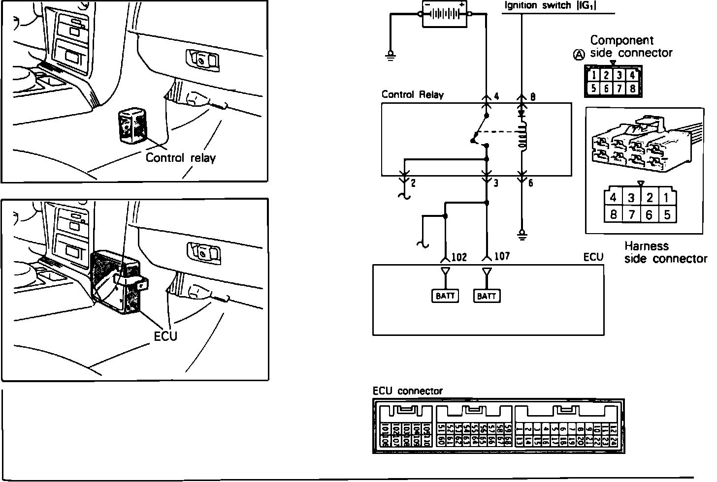 Failure of the control relay could interrupt power supply to the fuel pump, injectors and ECM, resulting in start failure.