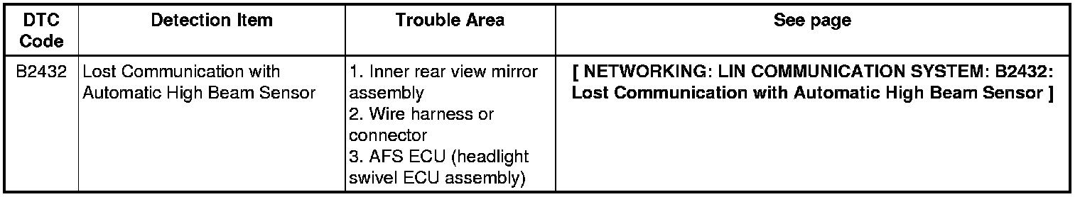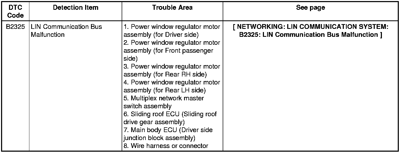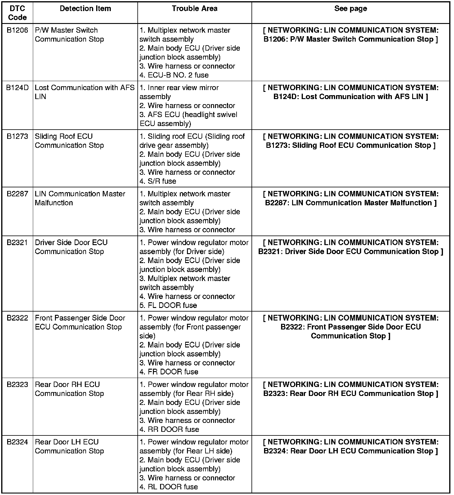 NETWORKING: LIN COMMUNICATION SYSTEM: DIAGNOSTIC TROUBLE CODE CHART