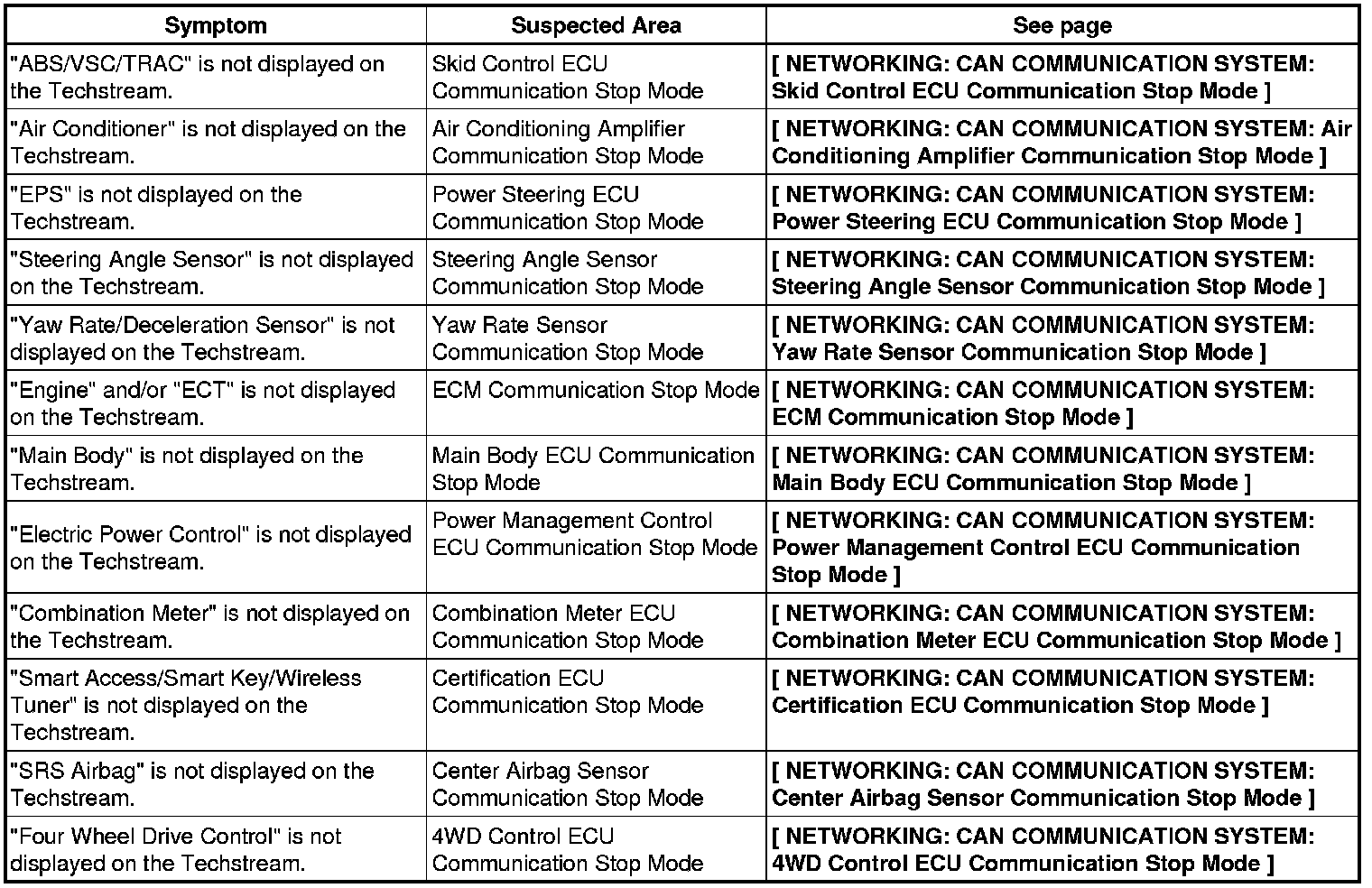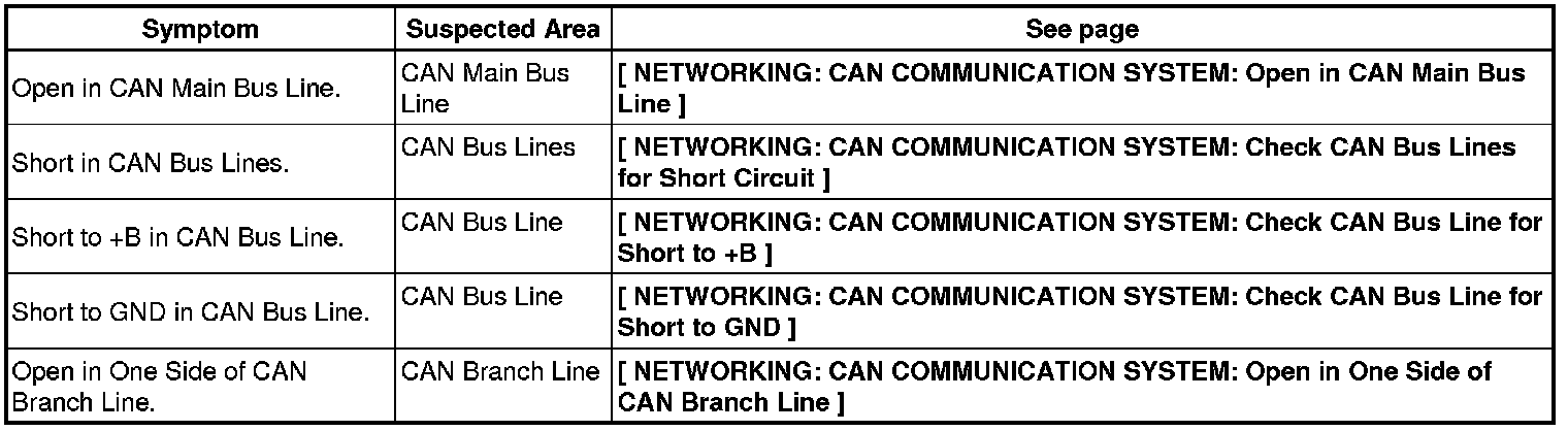 NETWORKING: CAN COMMUNICATION SYSTEM: PROBLEM SYMPTOMS TABLE