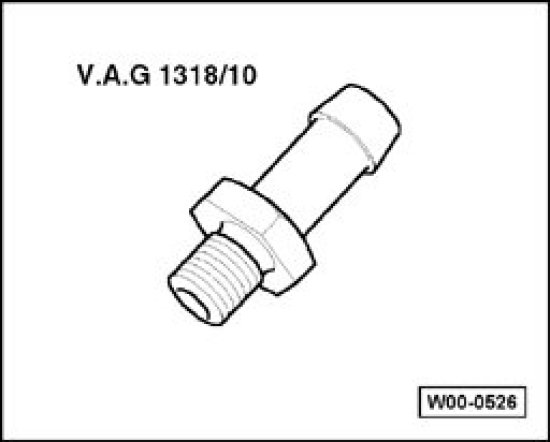 - Connect V.A.G 1318 pressure gauge with V.A.G 1318/10 adapter to hose.
