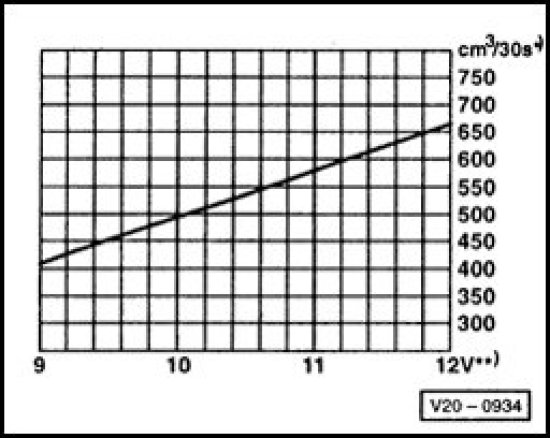 - During test, a voltage of 12.5 volts is measured at battery. Since the voltage at the pump is approx. 2 volts less than battery voltage, there is a minimum delivery rate of 530 cm3/30 s.