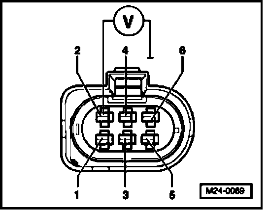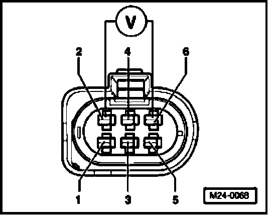 - Connect multimeter to terminals 2 + 6 of connector for voltage measurement.