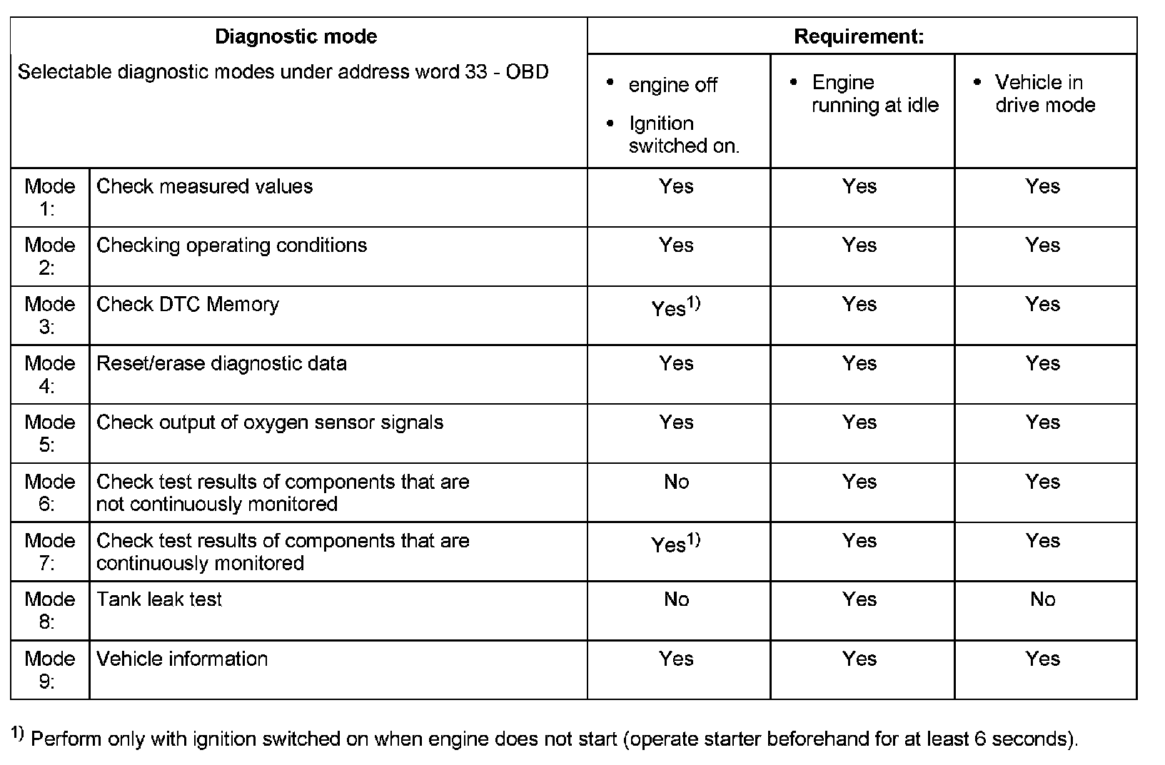 Selectable diagnostic modes under address word 33 - OBD