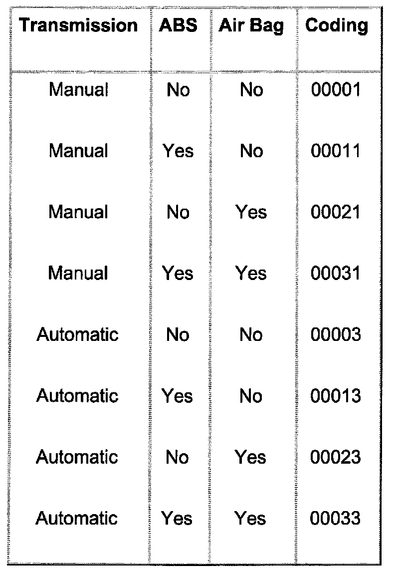NOTE: The coding entered will be activated by turning the ignition off and then on again. If after entering the valid code the ignition is not turned off and on again, the malfunction "control module incorrectly coded" in DTC memory cannot be erased.
